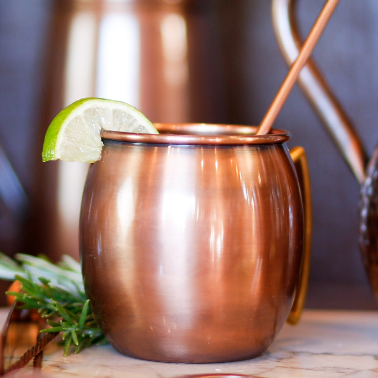 Crafted with attention to detail, this barrel-shaped mug offers a generous 16-ounce capacity, making it perfect for enjoying a variety of beverages. Whether you're sipping on a classic Moscow Mule or enjoying your favorite cocktail, this mug provides ample space to hold your drink with style.