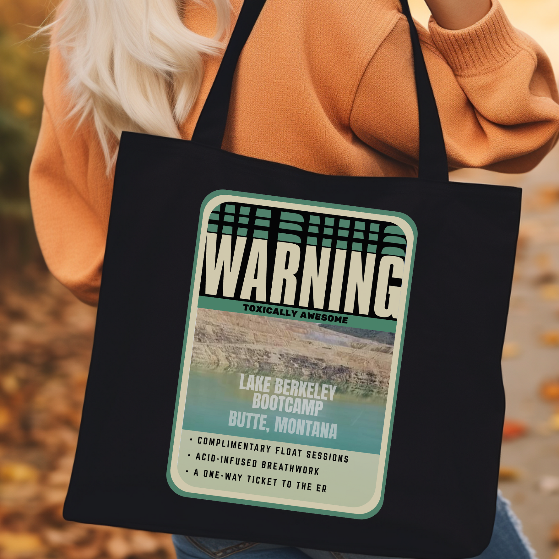 Unit price / perOnly in Butte can a toxic lake spark an iconic sense of humor — and this tote bag delivers it in full force. Featuring our satirical Lake Berkeley Bootcamp “WARNING” graphic, this bag celebrates Butte’s legendary grit, sarcasm, and ability to laugh at what would terrify any other town.