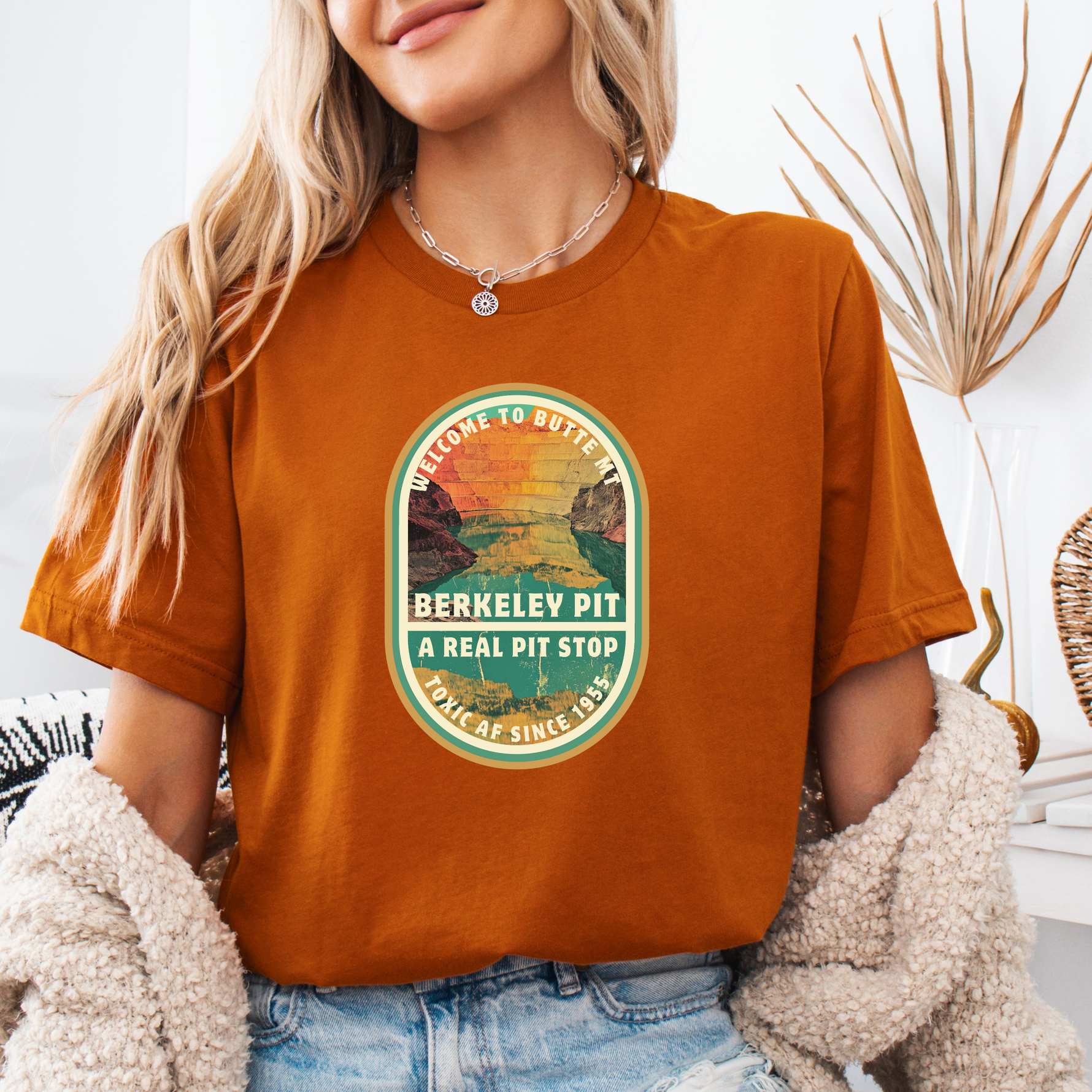 Show off your Mining City humor with our Berkeley Pit – Toxic AF Since 1955 Tee. Inspired by Butte’s most infamous landmark, this retro-style graphic blends vintage Montana colors with a tongue-in-cheek nod to the legendary pit that’s as iconic as it is hazardous.